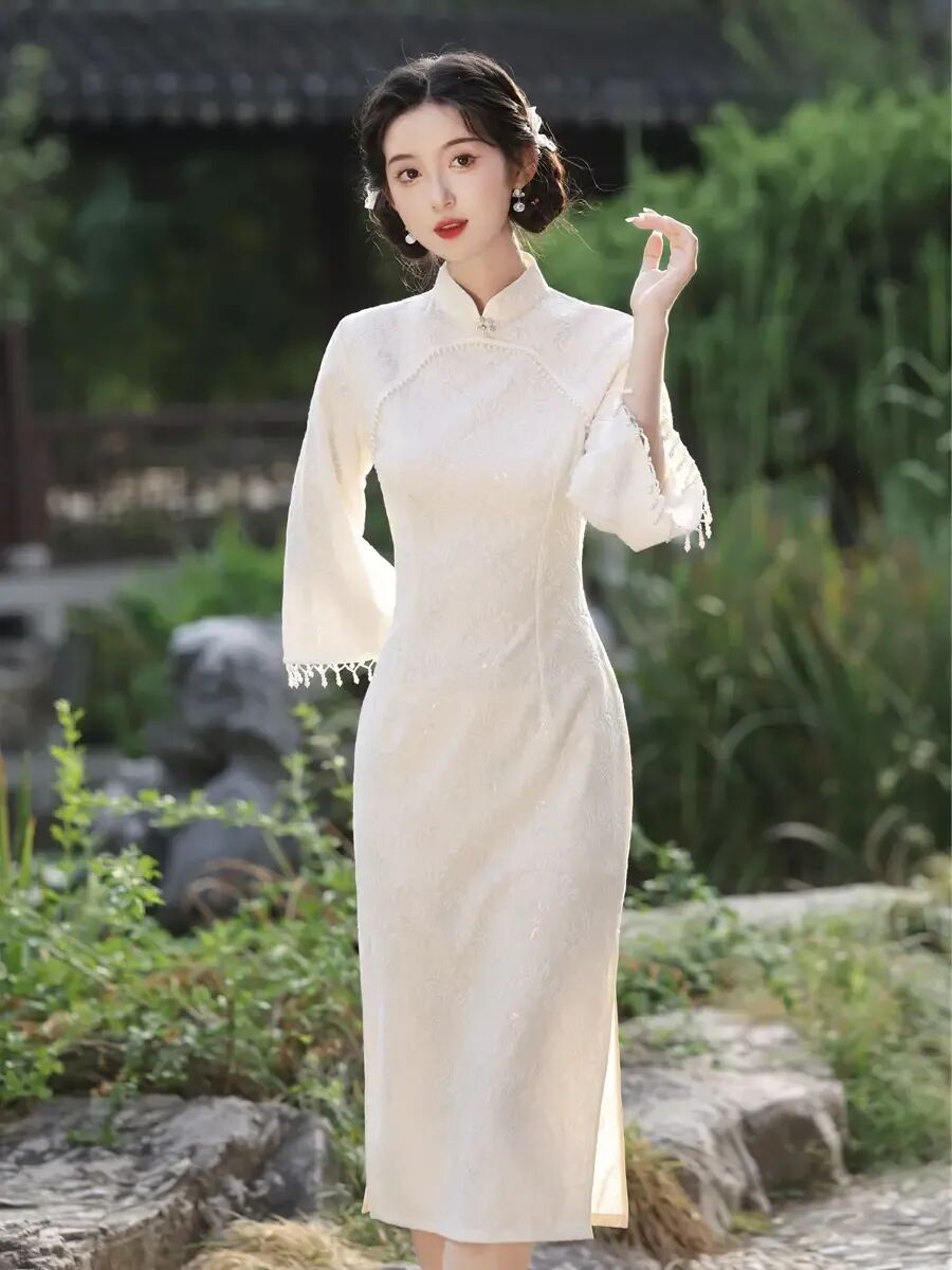 2024春季新款新中式提花復古民國淑女風改良版長袖旗袍LSB2241