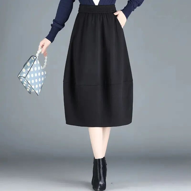 時尚氣質,松緊高腰毛呢半身裙女裝花苞裙中長款厚款裙MYX-1202