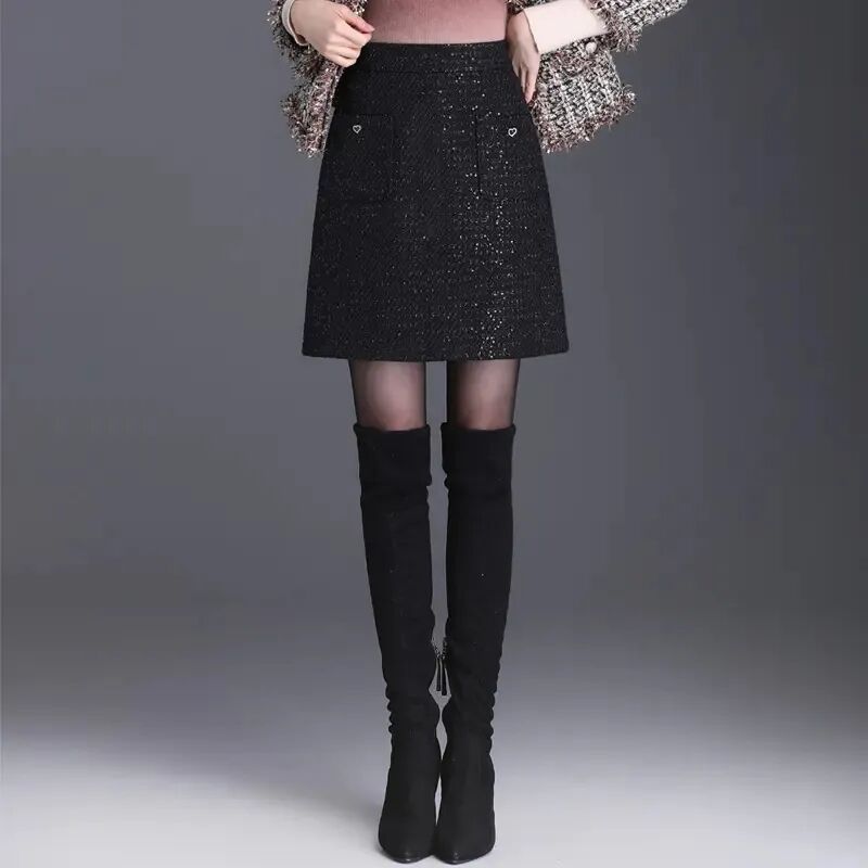 時髦洋氣亮片短款A字裙,通勤小香風高腰修身半身裙MYX-99681