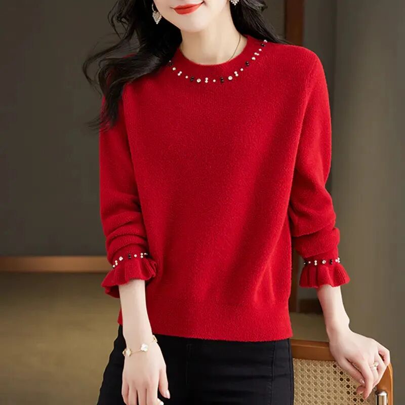 新款龍年本命年衣服喜慶,新年紅色毛衣木耳邊打底衫CC-XFY-1368