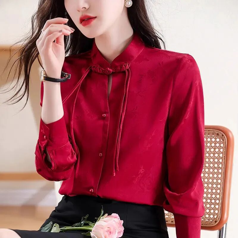 春款中式國風民族風提花面料盤扣長袖襯衫K-B12N9092
