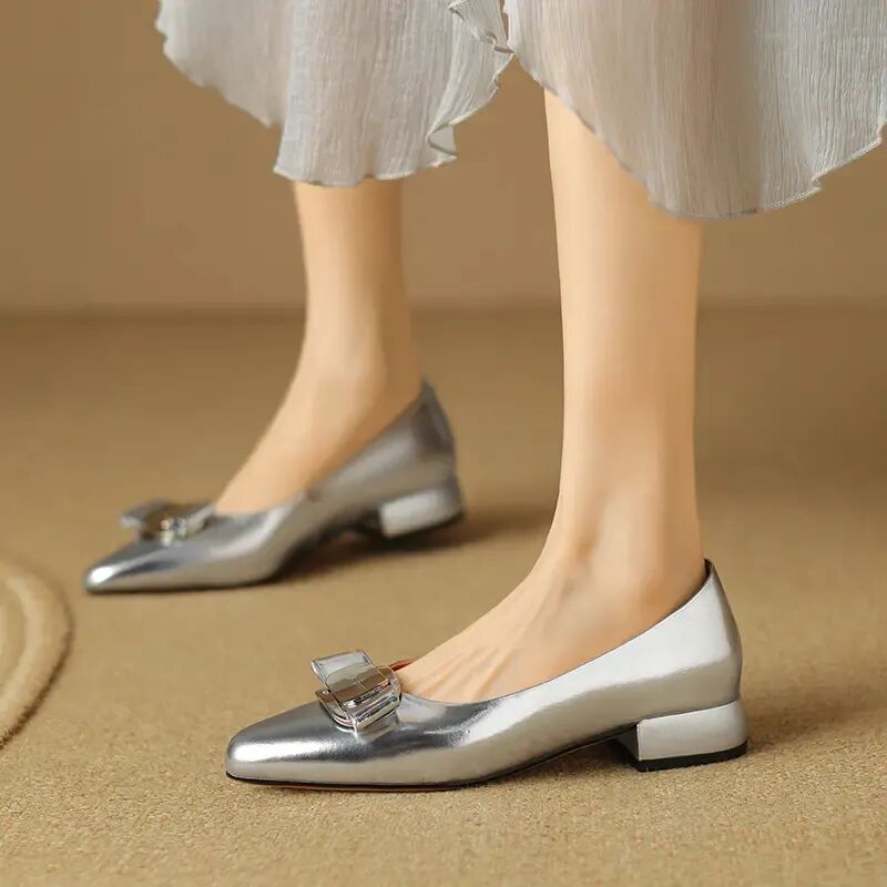【預售5天】春秋季新款鞋子圓頭粗跟高跟鞋水鉆金屬樂福鞋名媛正裝深口單鞋女HY&H3298