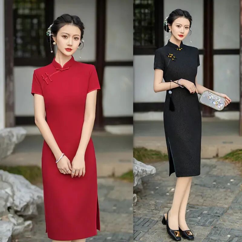 中長款短袖旗袍2024春夏新款復古國風大碼旗袍裙GX801067