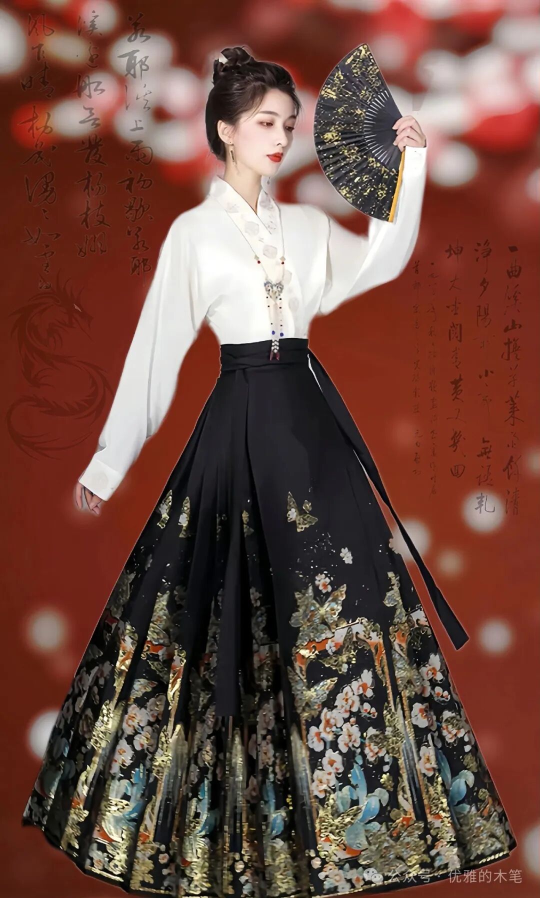 1. 上衣選擇:搭配一件質地柔軟且保暖的羊毛毛衣或者針織衫,顏色可以選擇與馬面裙相協調的暖色調或者中性色調。如果氣溫較低,可以選擇高領毛衣來搭配,既保暖又時尚。