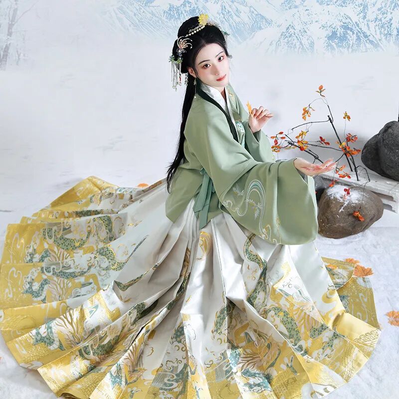 其中的馬面裙,無疑是當(dāng)下最出圈的一款漢服類型。如今在街頭、商場(chǎng)、地鐵、寫字樓等任何一個(gè)日常場(chǎng)景里,都能遇見把馬面裙作為常服搭配的人。