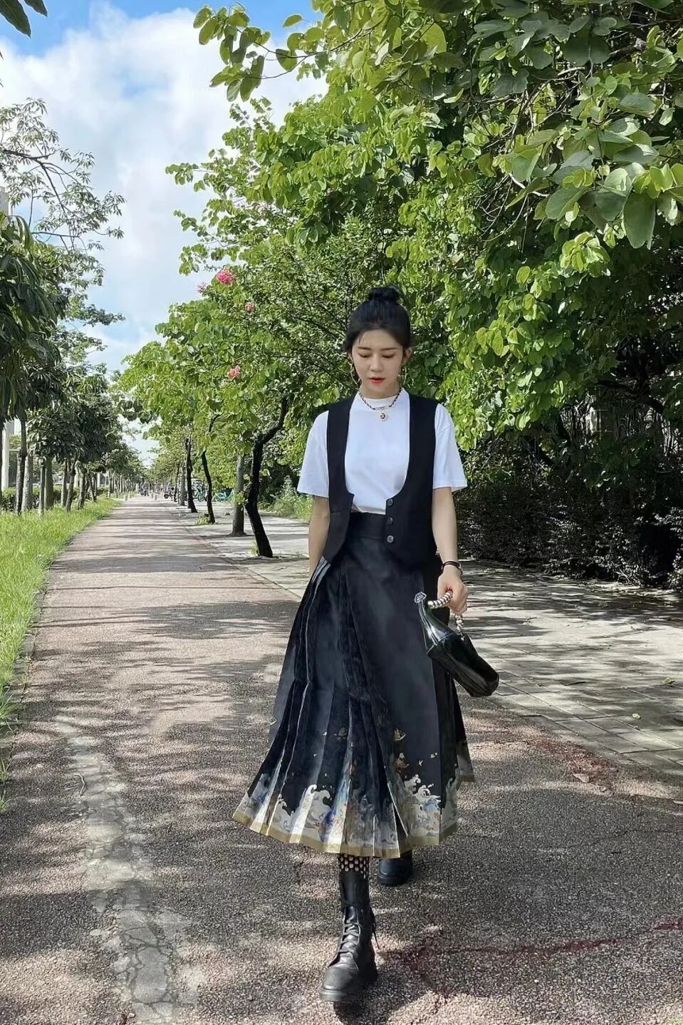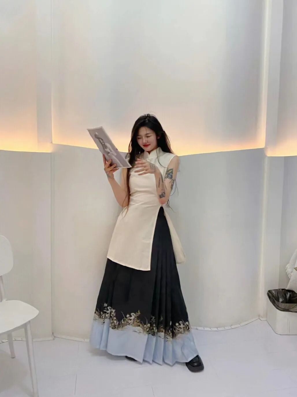 圖源小紅書@MEET脫掉高跟鞋;改良款式的馬面裙,設(shè)計(jì)更現(xiàn)代、便于穿著。
