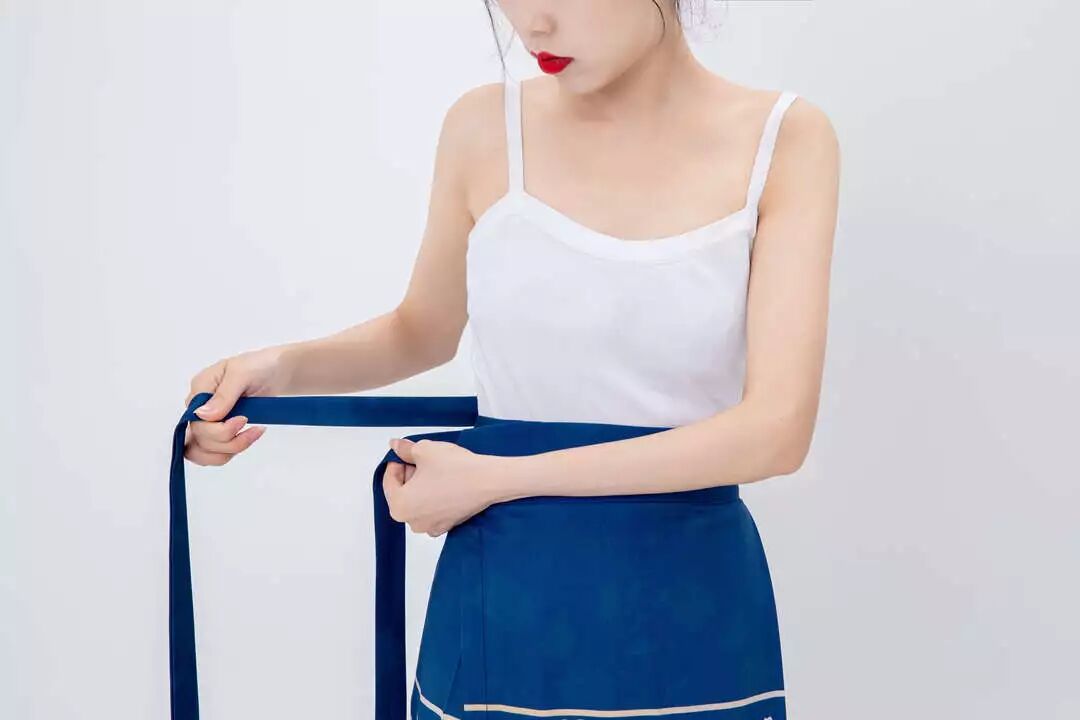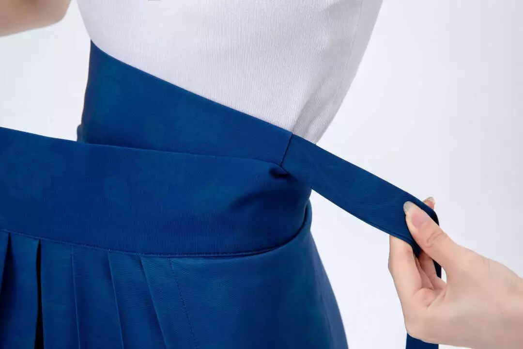 ? 將左側剩余的裙頭沿著腰線向右側貼合