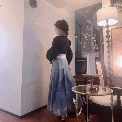 襯衣其實(shí)是前幾年流行的法風(fēng),但是配馬面裙很好看,羊腿袖立體的弧度讓直線條的馬面裙看起來更修長(zhǎng),整體廓形呈現(xiàn)窄長(zhǎng)的X型。