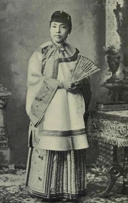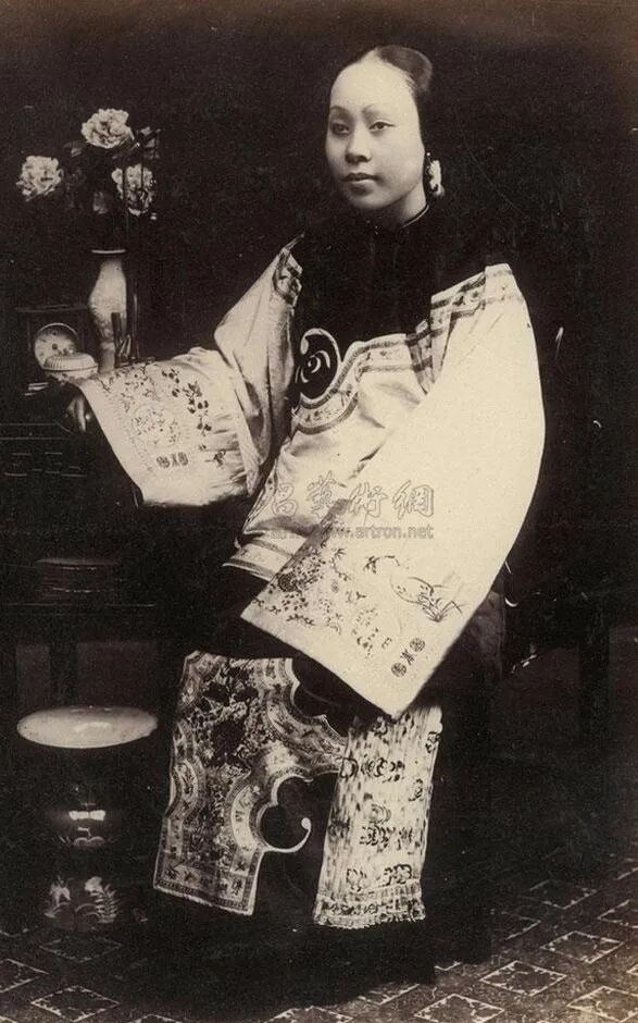 清代滿人入關以后實行男從女不從的服裝法令,馬面裙由男女通用的裙子變為只有女性才穿的裙子。