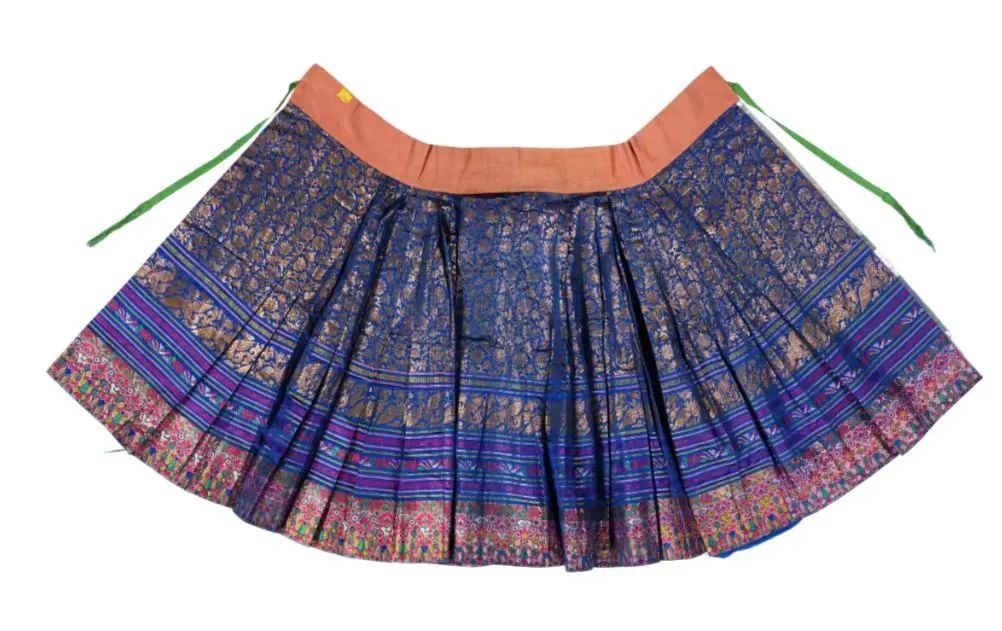 清代馬面裙的褶裥更加細而密,故而得名百褶裙,其褶裥對稱分布在兩側裙脅,單側以對褶向裙脅中心線對稱倒伏。褶裥排列整齊有序,其大小因地域差異各有講究,細密程度也不盡相同,最多的可達上百個。