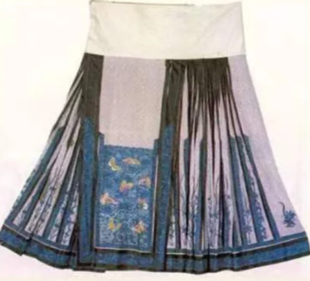 宋代的旋裙發展到明代,逐漸形成了馬面裙。明代成化年間,京城人士都喜歡著馬面裙,上至一國之母下至黎民百姓,人人皆穿馬面裙。只是不同的階級,馬面裙的質地、裝飾和色彩都有著嚴格的區別。但此時并無馬面裙之名,其裙式簡單且未定型色彩秀麗,整體給人清新淡雅的感覺。