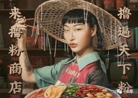 起因是有網(wǎng)民曬出三只松鼠一系列酸辣粉、螺螄粉等食品廣告宣傳海報(bào),結(jié)果一堆美食晾著沒人理,海報(bào)中模特的瞇瞇眼妝容反而成焦點(diǎn)。