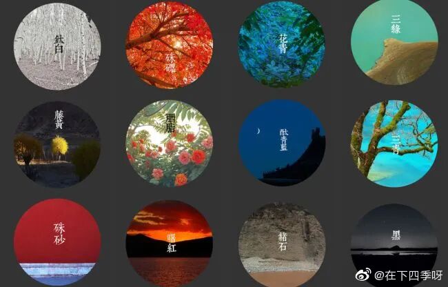 真正的中國十二色其實(shí)如下圖所示,具有雅致恬淡的古色古香之韻味。