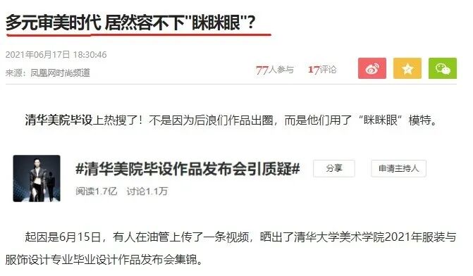 也正如澎湃新聞發(fā)布的評(píng)論文章《別只盯著小眼睛 》說的,反對(duì)西方對(duì)中國人的歧視,結(jié)果變成了中國人對(duì)中國人的外貌歧視,成了長相辱華,這本身就很荒唐。只要不是為了迎合西方的偏見,模特的眼睛小又如何?