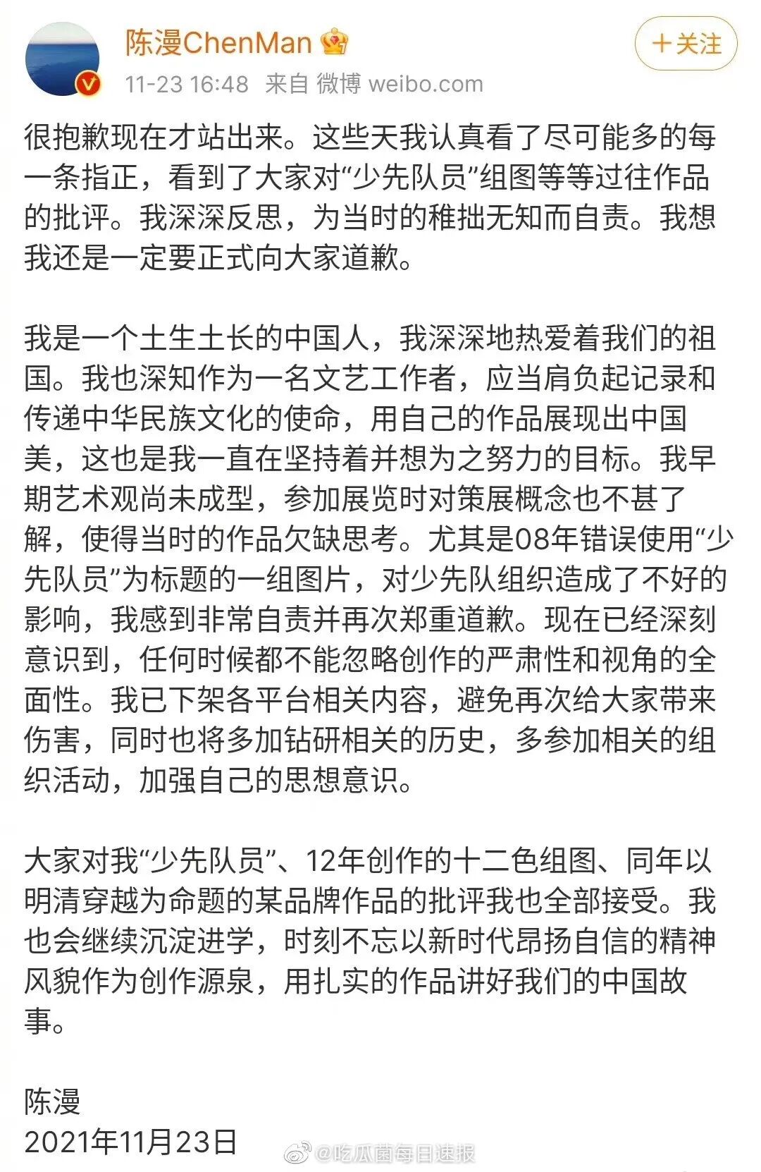 至于陳漫昨天發(fā)布的道歉聲明,顯然沒讓大家買賬,被稱作:只是為了一頓飯。