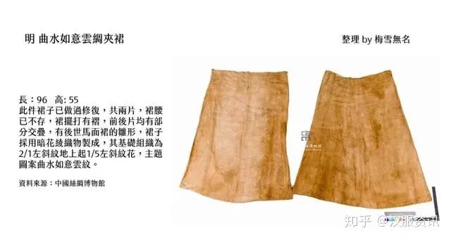 我們從明代出土的一些文物,也可以看到從兩大片布拼接,到腰側有打褶的發展痕跡。