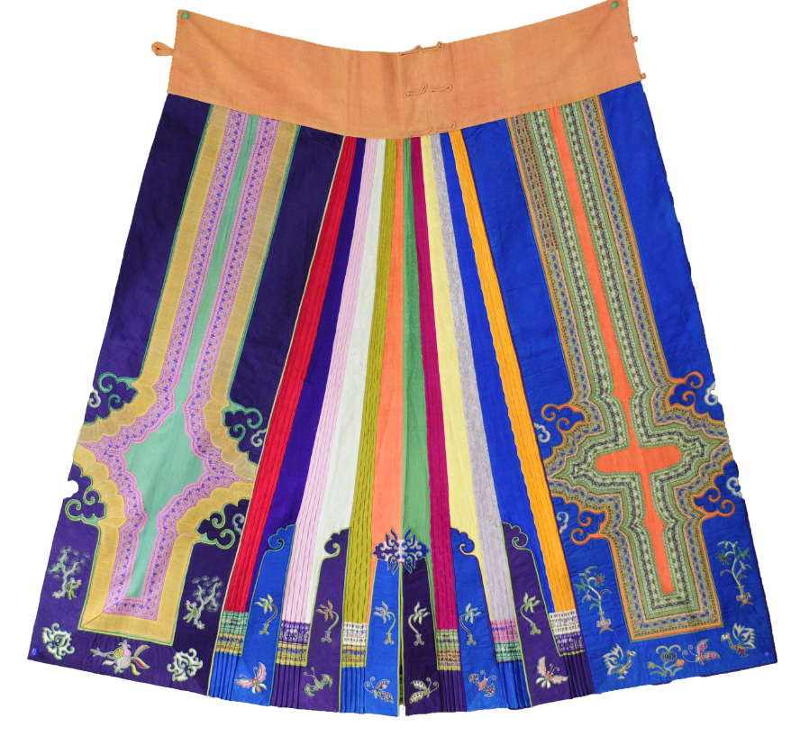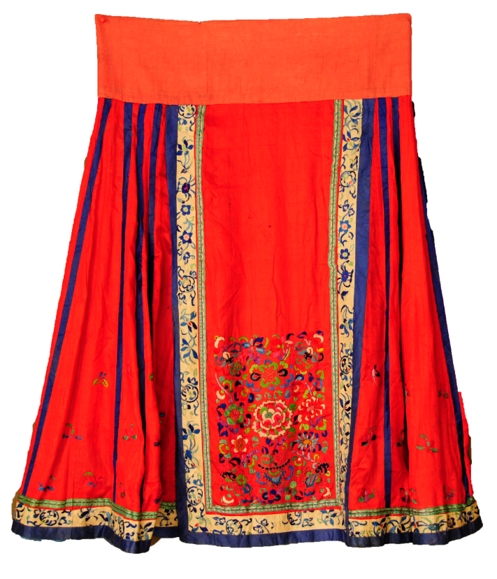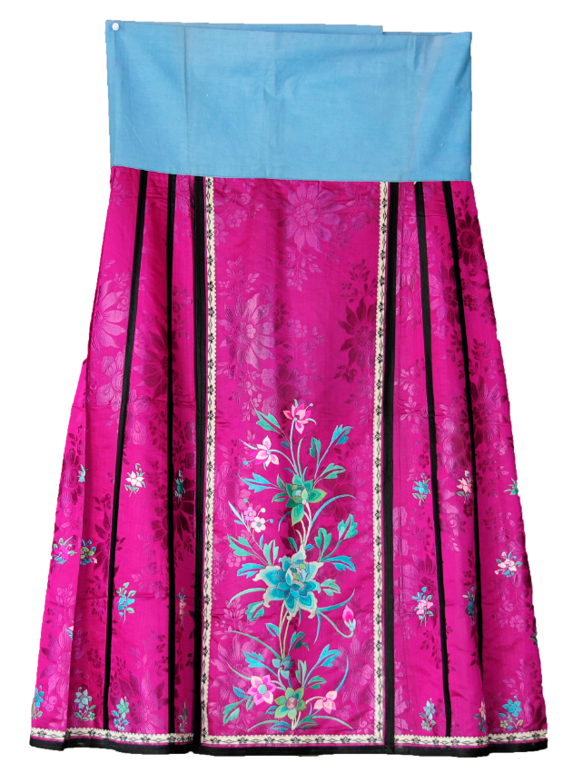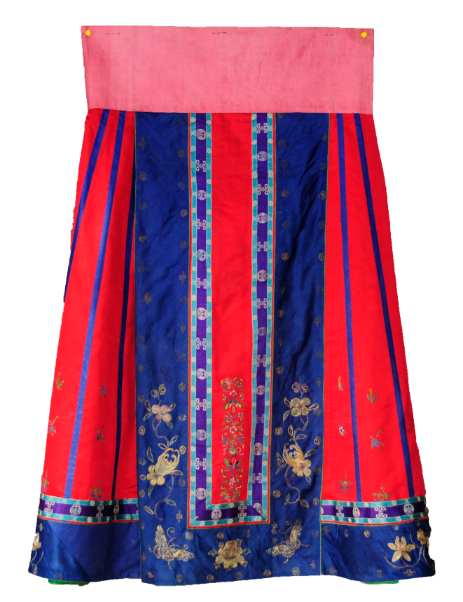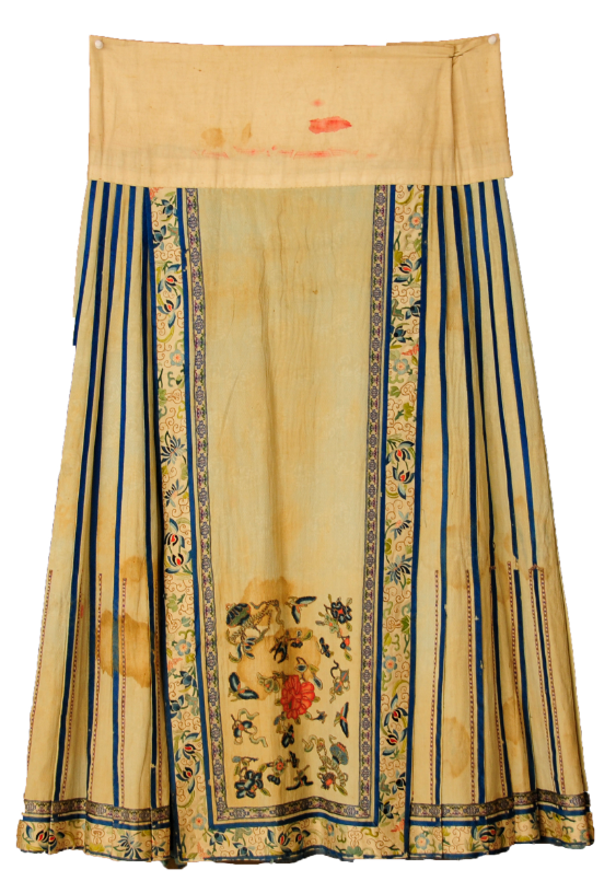 清代漢人女子所著馬面裙較為繁復,褶子細密,有多至百褶的,褶為死褶,一些馬面裙褶間還有鑲邊。清代馬面裙重視馬面的裝飾,多用刺繡等方式裝飾馬面。