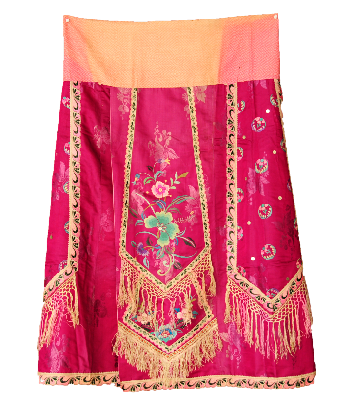 玫紅暗紋提花牡丹紋流蘇馬面裙