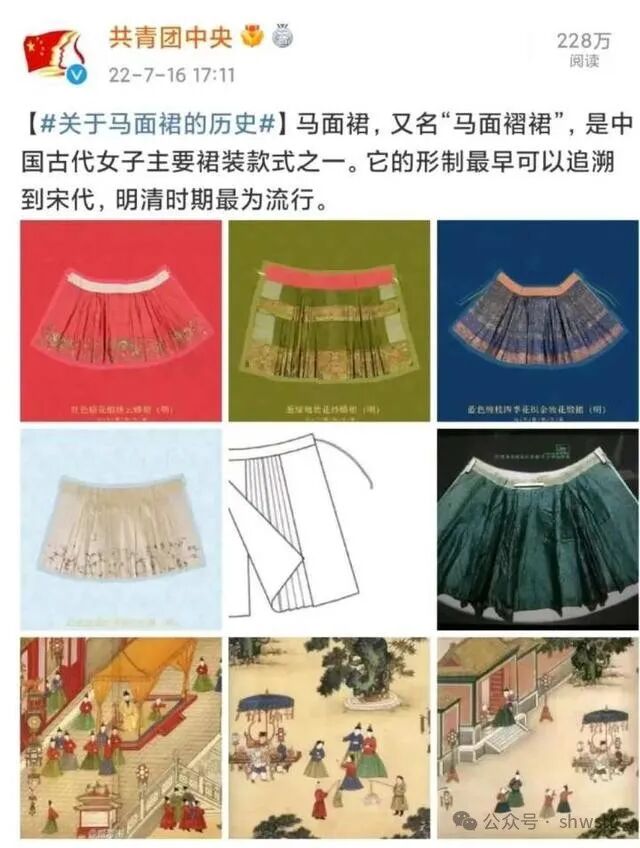共青團中央也發文稱所謂的Dior廓形,確實與華服馬面裙非常相似,很多細節都雷同。為何毫無愧色地稱全新設計,還冠以標志性的dior廓形,網友的不解之處甚至憤怒之處,是完全可以理解的。