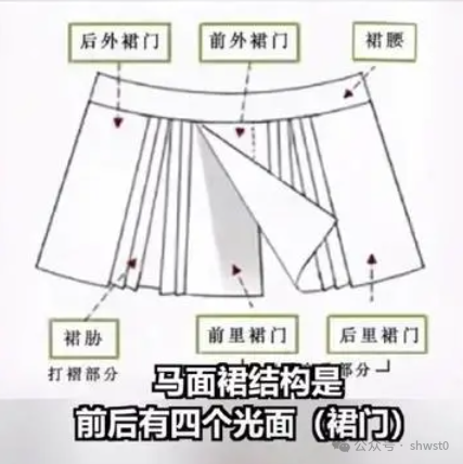 5、平行/梯形選擇。市面上大部分的馬面裙都是梯形褶,上身效果呈A字,更適合梨形身材。一般如果腰臀差較大,比如多于20cm,建議梯形褶或微梯形。平行會更有古韻一點。