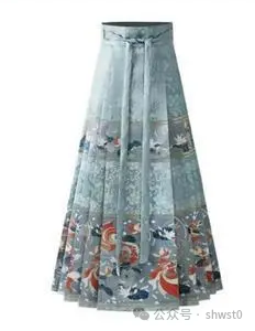 3、馬面常見工藝科普:①仿織金/銀/妝花:就是在裙子上用金/銀/彩色的線織出來的圖案;②仿螺鈿:螺鈿工藝本身其實并不是服裝工藝,是現代商家根據螺鈿工藝仿制出來的,原理和仿織金/銀/妝花差不多,就是線的不同,在陽光底下仿螺鈿的裙子會熠熠生輝,很漂亮;③印花工藝:顧名思義就是把圖案印在衣服上,而非織在衣服上;④繡花工藝:繡花工藝一般在仿孔府花鳥裙,花鳥元素馬面裙和清代馬面裙上見到的比較多,不過現在也是有些蘇繡,粵繡之類的繡花明馬面裙,價格一般偏高。