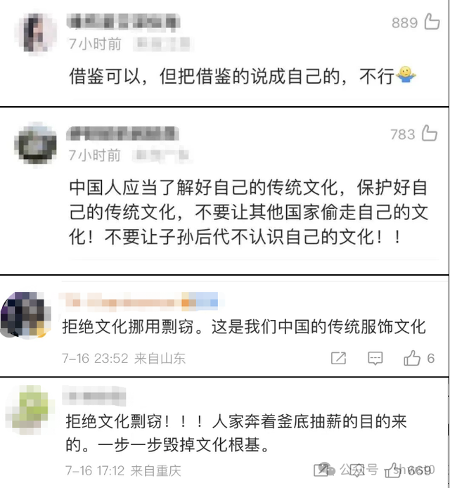 共青團中央在微信公眾號上指出,中華上下五千年的歷史,留下了許多經典文化遺產。近些年來,中國風風靡全球,國際時裝周也經常出現中國元素,很多使用中國元素的設計師都會坦言設計靈感來自中國傳統文化中的經典之作。中華文化是中國的,也是世界的,我們對于借鑒中華文化豐富人類美好生活是支持的,同時也希望我們的中華傳統文化能夠被更好地尊重!