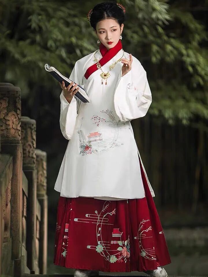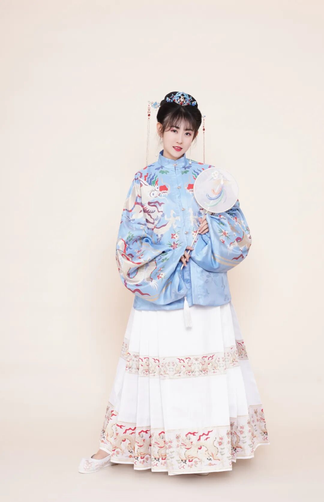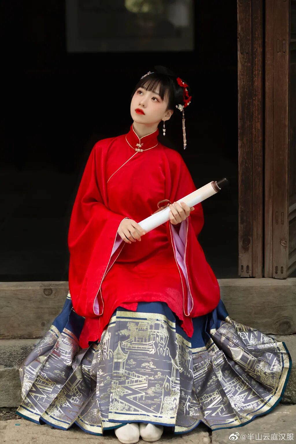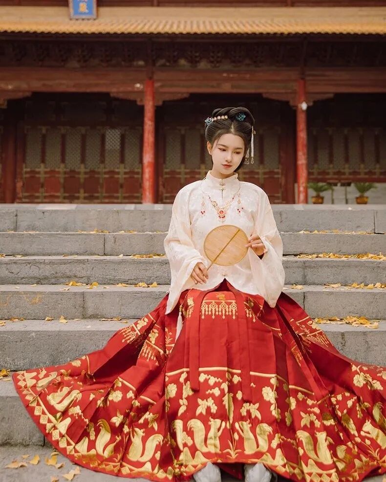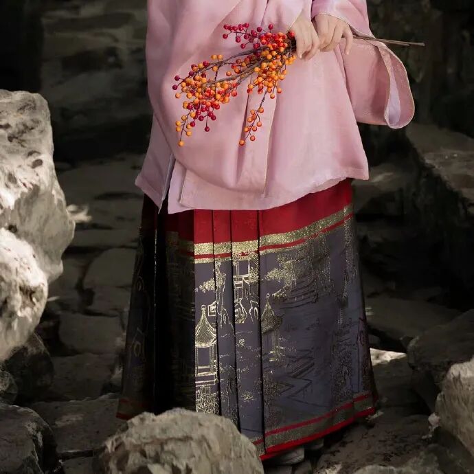 根據漢服研習博主@梅影詩魂-梅雪無名,馬面跟馬沒有關系,馬面其實是建筑上的詞匯敵臺(敵臺,又稱馬面,是在城墻或城池旁突出的塔樓式建筑,在正面或兩面突出城墻外,其主要功能是加強防御與攻擊墻底敵軍。)