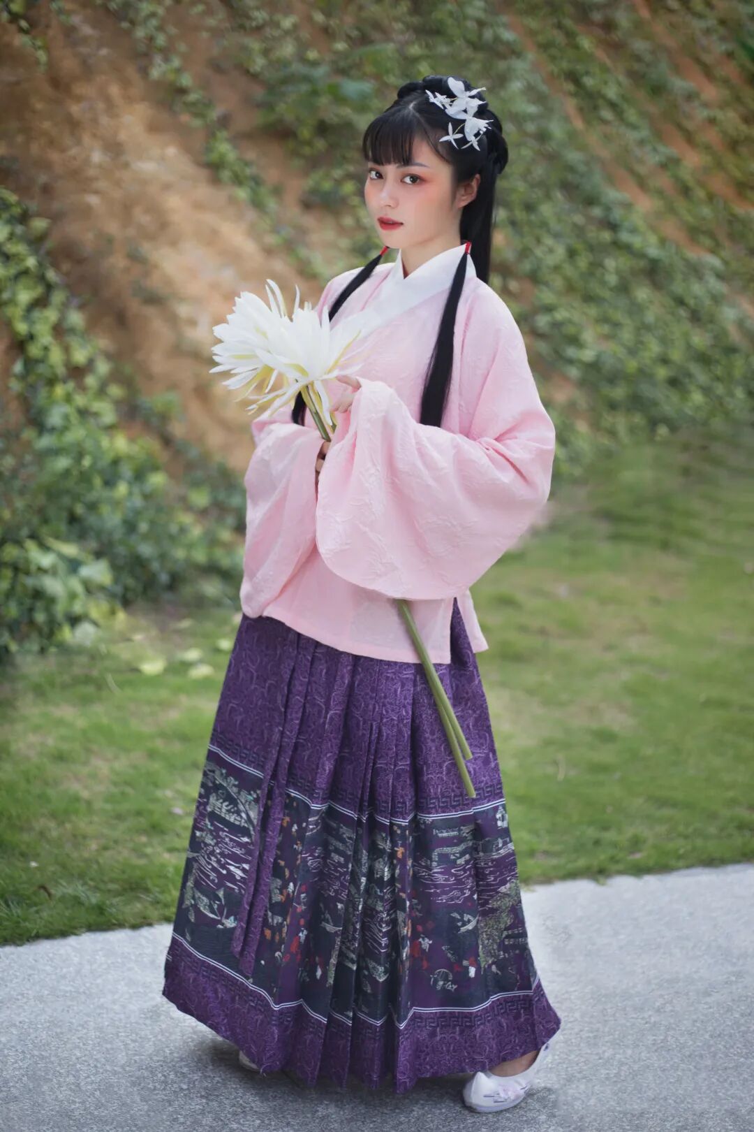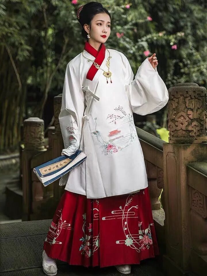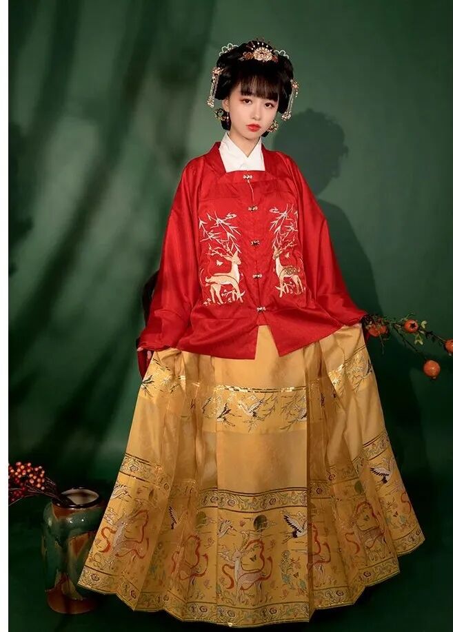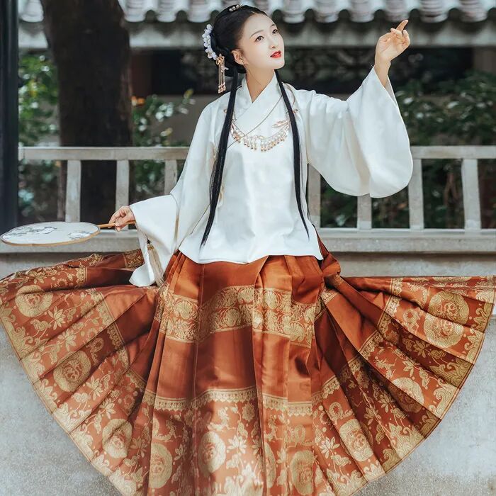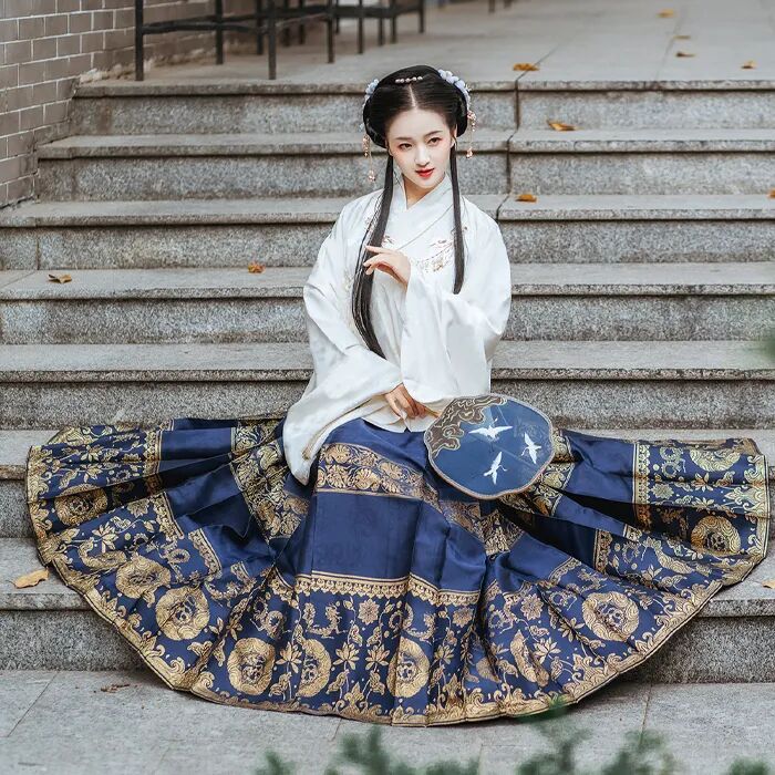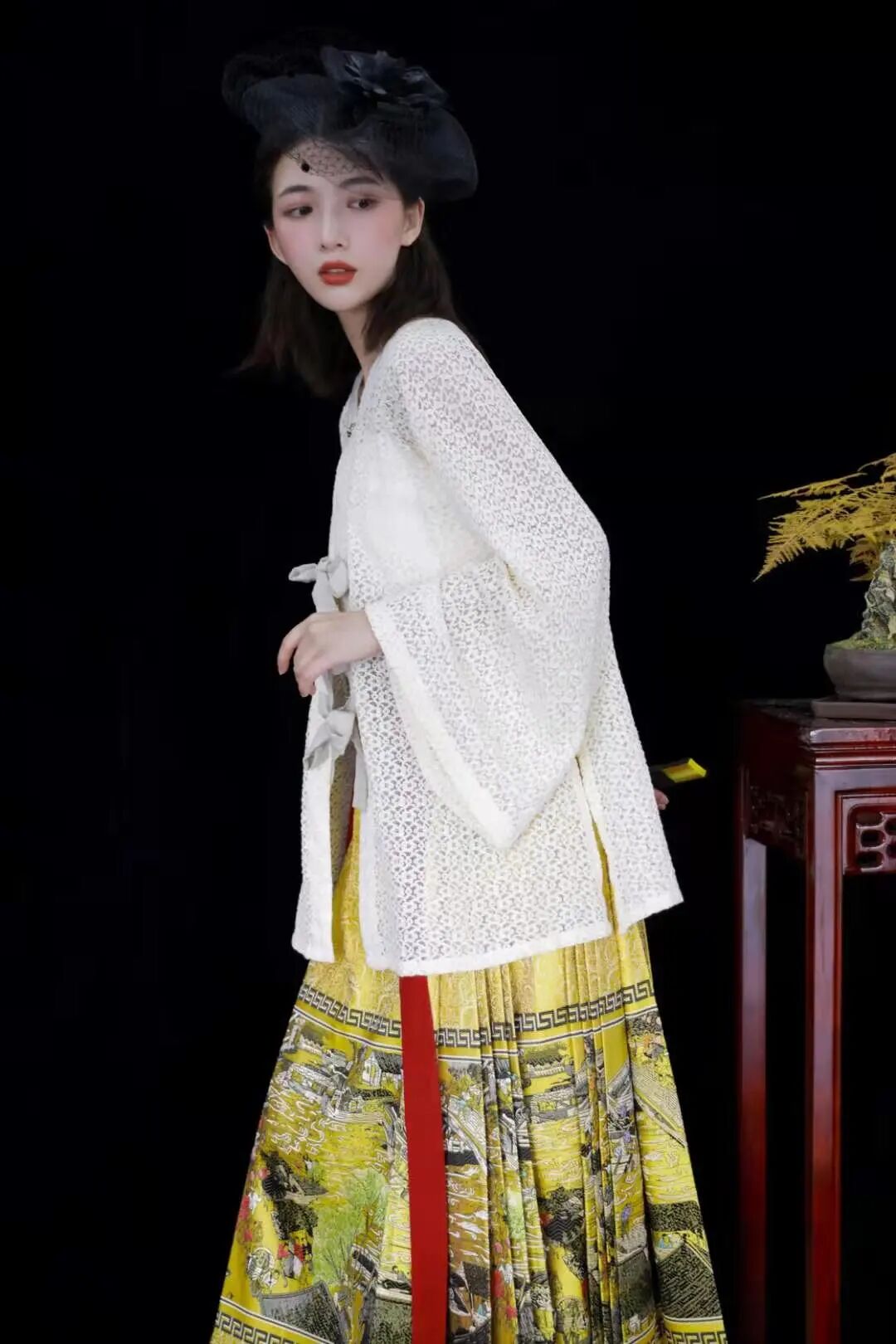 根據漢服研習博主@梅影詩魂-梅雪無名,馬面跟馬沒有關系,馬面其實是建筑上的詞匯敵臺(敵臺,又稱馬面,是在城墻或城池旁突出的塔樓式建筑,在正面或兩面突出城墻外,其主要功能是加強防御與攻擊墻底敵軍。)