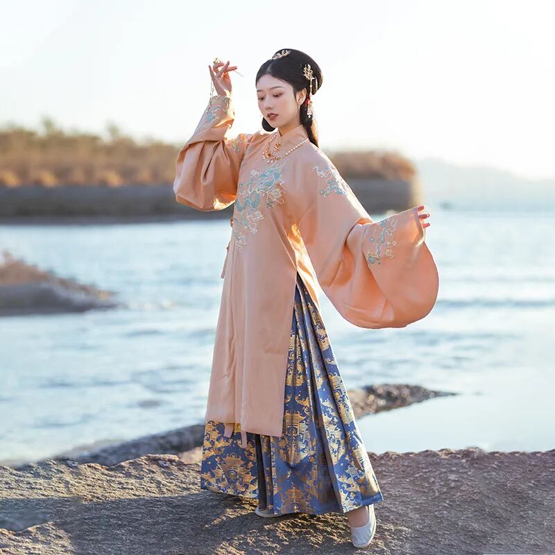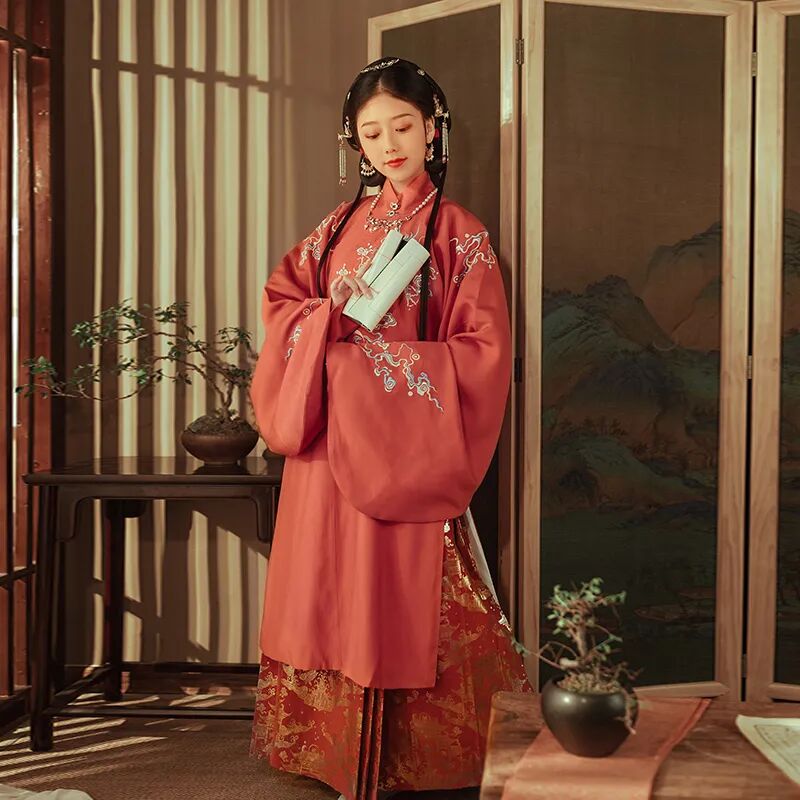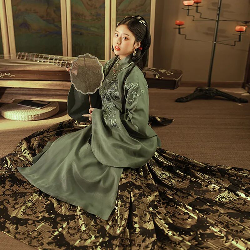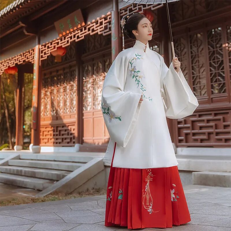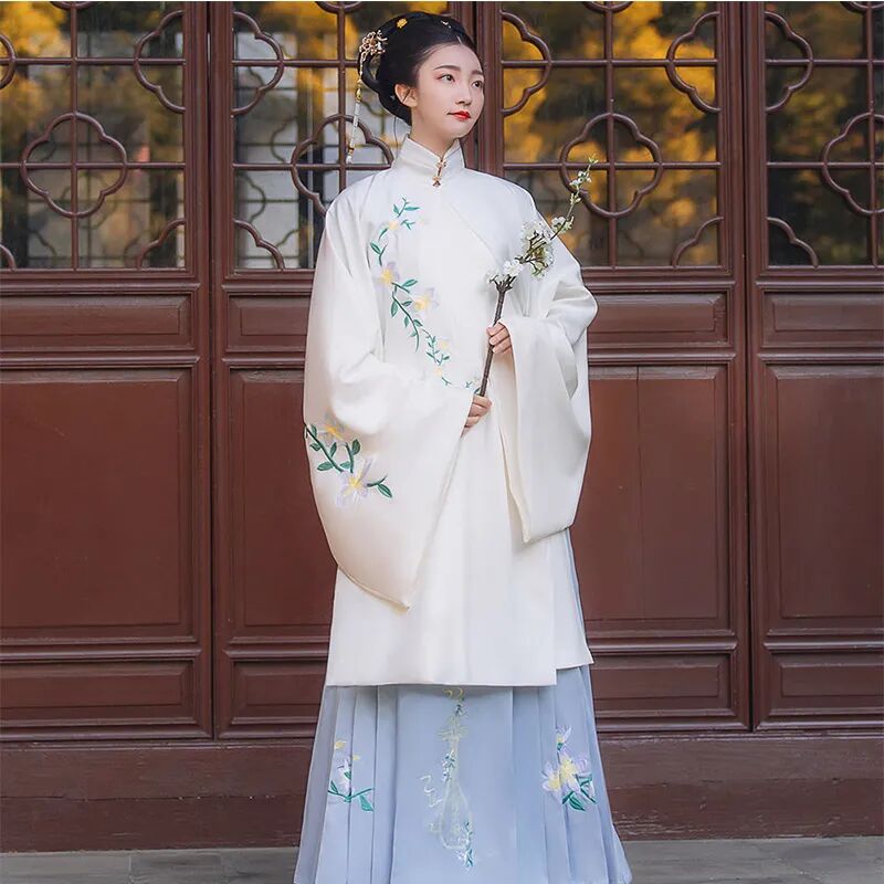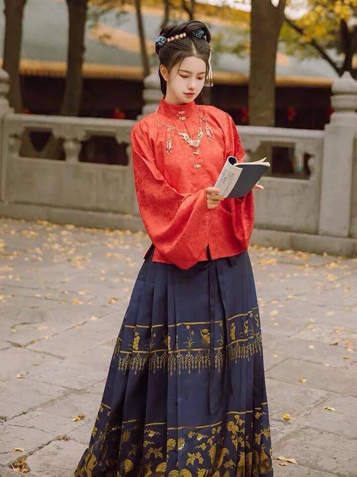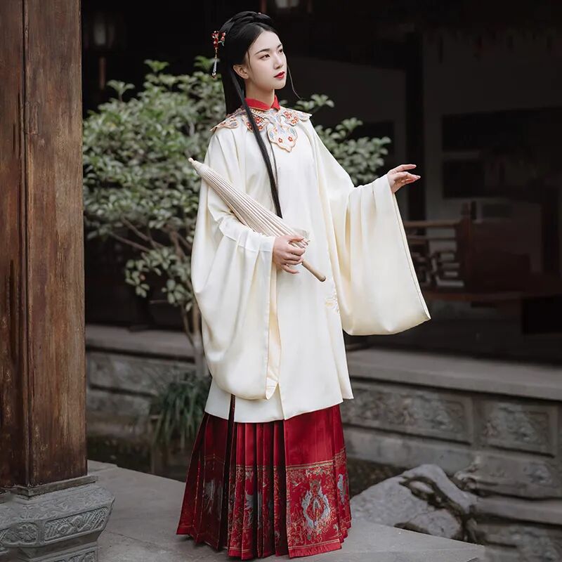 根據漢服研習博主@梅影詩魂-梅雪無名,馬面跟馬沒有關系,馬面其實是建筑上的詞匯敵臺(敵臺,又稱馬面,是在城墻或城池旁突出的塔樓式建筑,在正面或兩面突出城墻外,其主要功能是加強防御與攻擊墻底敵軍。)