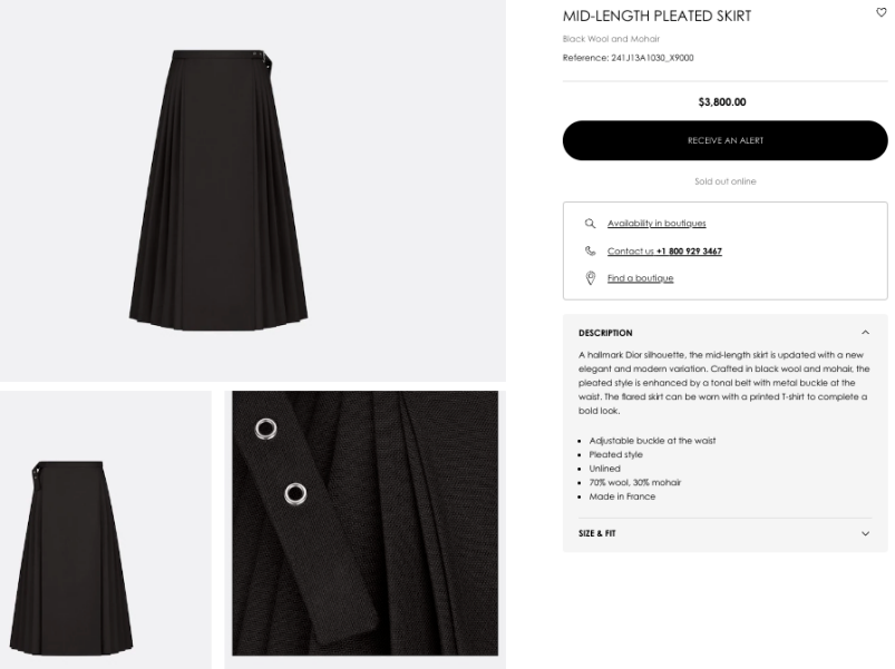 七月下旬,迪奧上新了一條標價2.9萬元的秋冬款裙子。