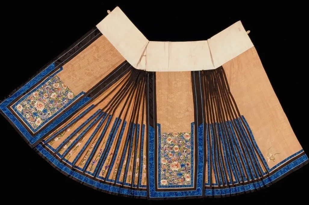 馬面裙,又名馬面褶裙,中國古代女子主要裙式之一,前后里外共有四個裙門,兩兩重合,外裙門有裝飾,內裙門裝飾較少或無裝飾,馬面裙側面打裥,裙腰多用白色布,取白頭偕老之意,以繩或紐固結。