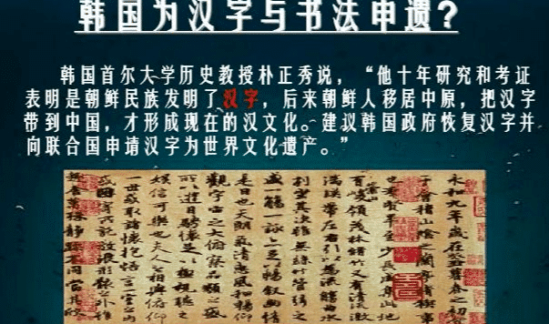 更離譜的是,就連漢字韓國也不曾放過,還打算給漢字與書法去申遺。