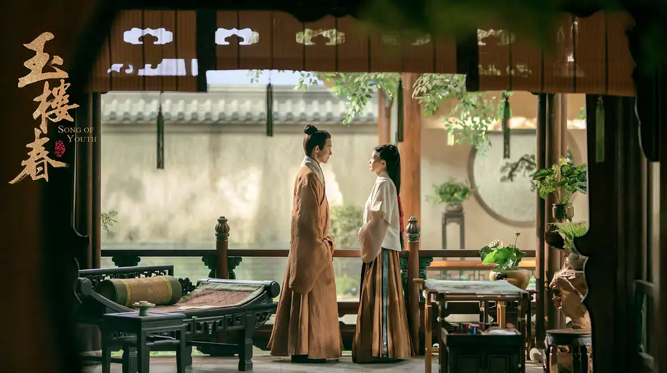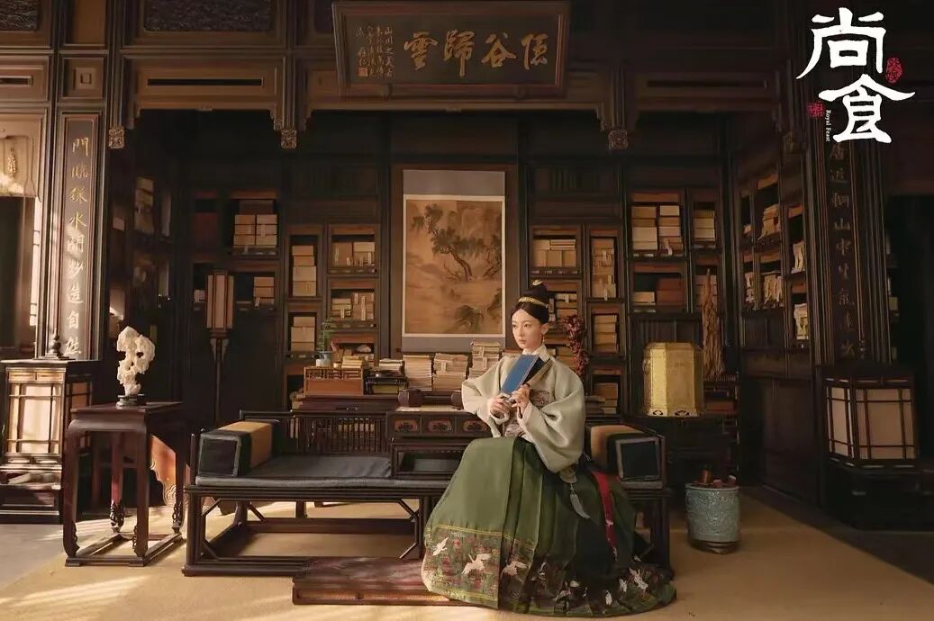 《玉樓春》中,青綠馬面裙配米色琵琶袖短衫,清麗柔和;《尚食》女官們的馬面裙,鶴紋繡于裙間,更顯皇家肅穆;《女醫明妃傳》中花朵由裙角散開,馬面裙在清麗之間還透著屬于幾分少女的嬌羞......