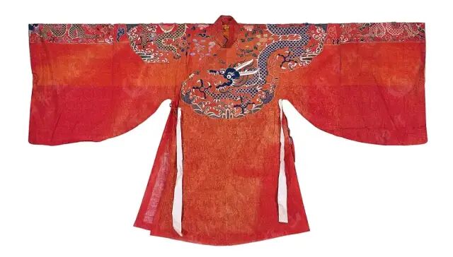 ▲大紅色妝花紗云肩袖襕飛魚紋長衫 明 山東博物館藏