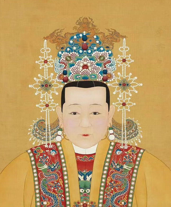▲衣領上紐扣的差別,有寶石紐扣似乎更加雍容華貴。孝肅皇后周氏容像;孝貞純皇后王氏容像