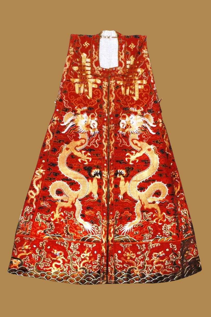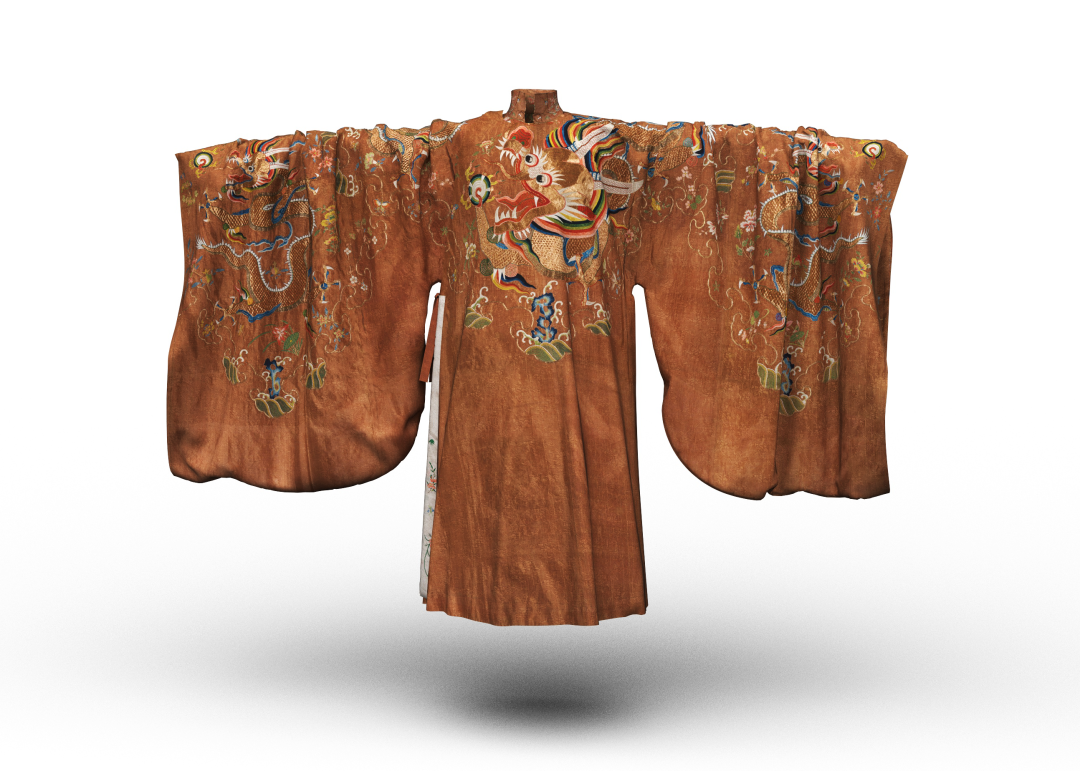▲香色芝麻紗繡過肩蟒女長衫 山東博物館藏