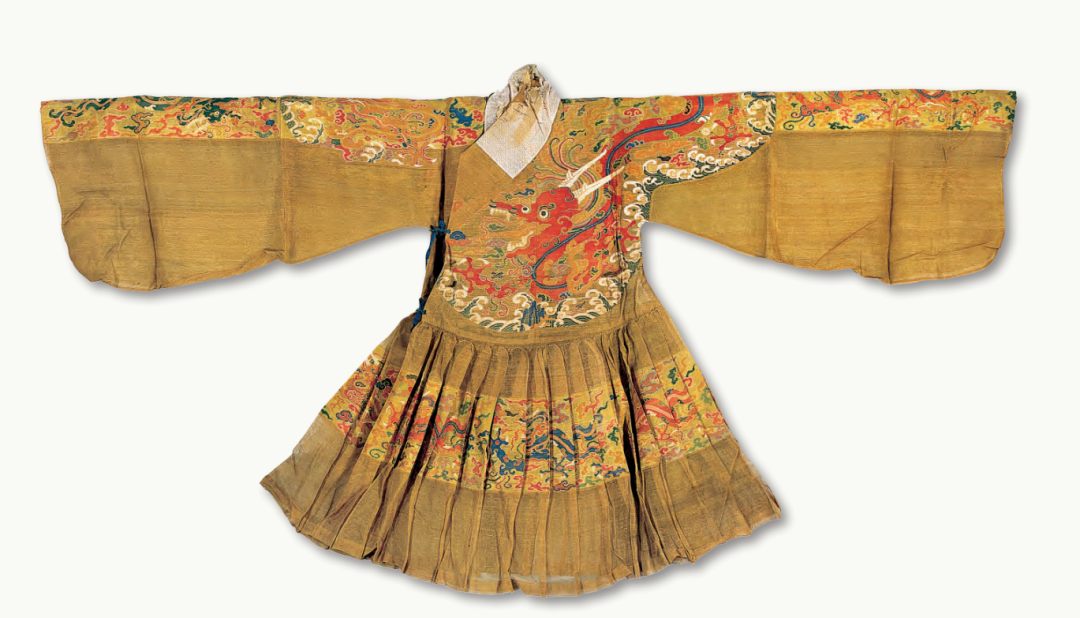 ▲明·紅色暗花緞繡云蟒裙 山東博物館藏