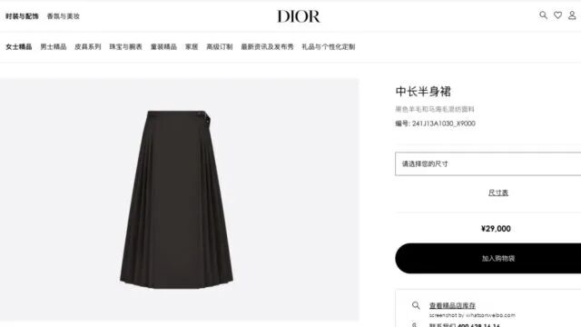While the skirt can no longer be found on its mainland China site, and was marked as sold out on the Hong Kong site, it is still available in the city’s physical Dior stores for HK$30,000 (US$3,820).
