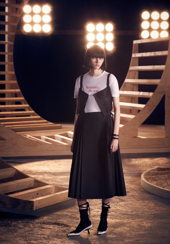 奧官網介紹里稱這條半裙采用標志性的Dior廓形,是一款全新的優雅時尚的單品,并未說明靈感來源。
