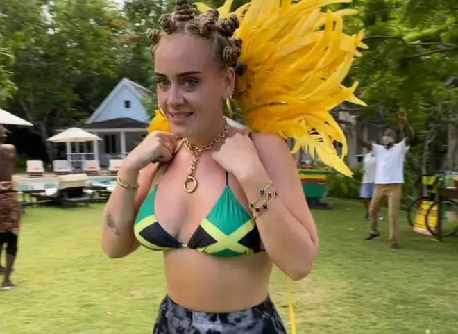 多次獲得格萊美獎的歌手阿黛爾最近在社交媒體上大放異彩,然而并不是因為她的音樂。這位歌手發布了一張她在倫敦諾丁山狂歡節上的照片,她身穿牙買加國旗串聯的比基尼上衣,頭發被綁成班圖結。雖然粉絲們對她的驚人轉變充滿了喜愛,但也有一些人指責她的文化挪用,批評她試圖使用非洲人的發型。