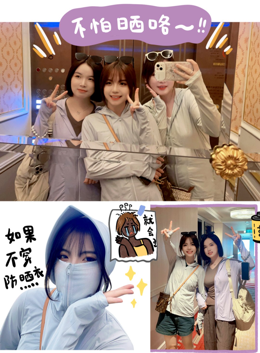 更好笑的是喵姐,明明已經(jīng)有防曬衣了