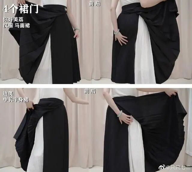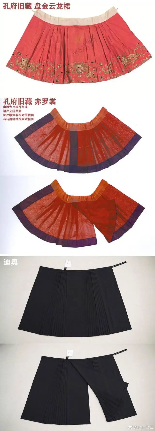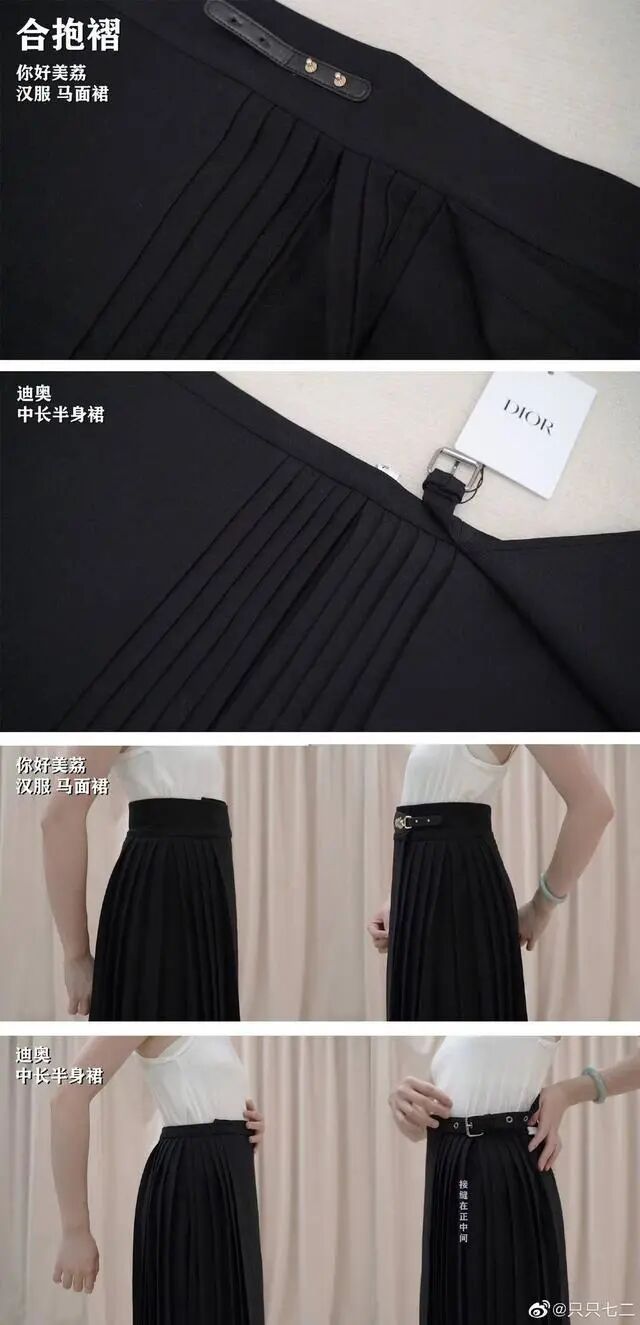 漢服馬面裙與迪奧半身裙對比,圖片來自UP主七十二煙塵