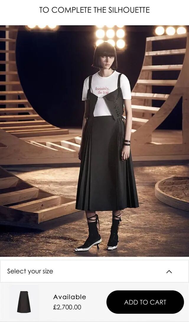 這一場成衣秀來自現任迪奧女裝創意總監瑪麗亞·嘉茜婭·蔻麗(MARIA GRAZIA CHIURI)。在迪奧的官方微博中稱,這一場秀的靈感自品牌創辦者克里斯汀·迪奧曾有的設計,自精妙制服設計中汲取靈感……將‘離題的藝術’融入考究廓形當中。在官方網站的介紹中,則稱這條裙子為標志性的Dior廓形。但網友們發現,從形制和設計上來看,這條裙子與中國的馬面裙有極大的相似度。