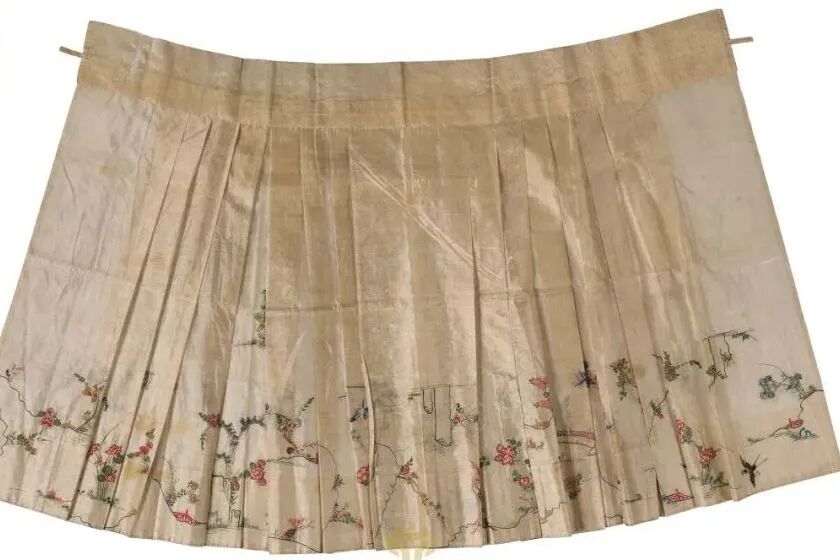 明 白色暗花紗繡花鳥紋裙 山東博物館藏
