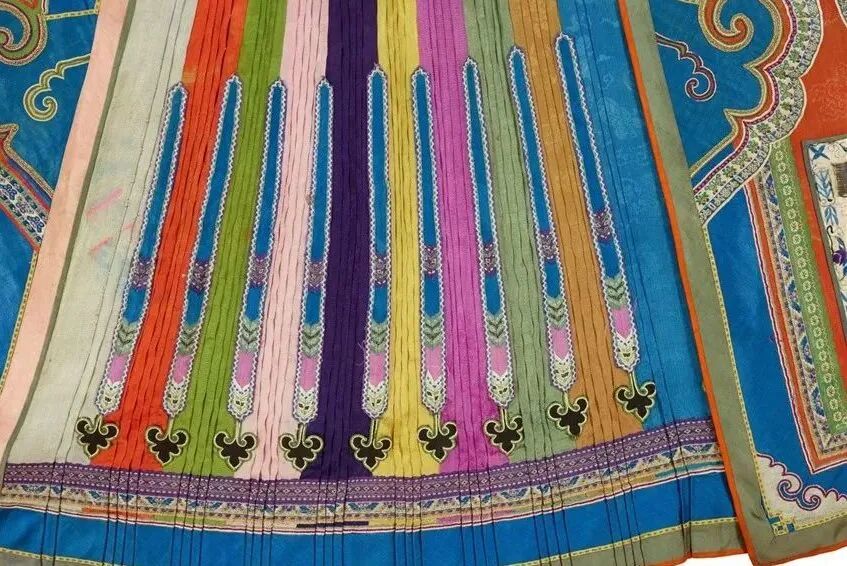 五彩提花綢繡人物紋魚鱗褶月華馬面裙 民族服飾博物館藏