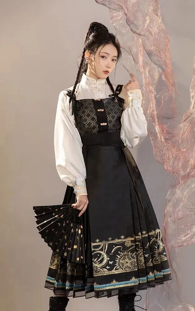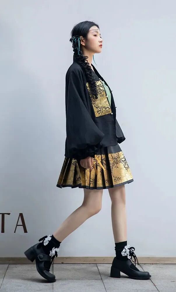 21世紀后,中國經濟發展愈發繁榮,年輕人對服飾的追求不在拘泥于西式審美,眼光又聚焦在我國厚重文明積累下的各朝各代的傳統服飾。隨著民族自信與文化自信不斷崛起,一大批熱愛我國古代傳統服飾的人群自發的研究古代服飾并融合現代特色在顏色、花樣、面料,形制上等進行二度創新,或將馬面元素與現代服飾進行融合形成新中式服飾。可謂迎來了中國古代服飾的文藝復興熱潮。