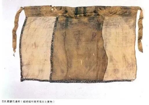 鳳尾裙應該是馬面裙變化最大的樣式,其兩側裙幅和前、后馬面都不再是連續的面料,轉而由細長的布條從形式上代之,由于布條間間隙較大,已不足以蔽體,故不單獨穿著,通常圍系在馬面裙之外作為裝飾。
