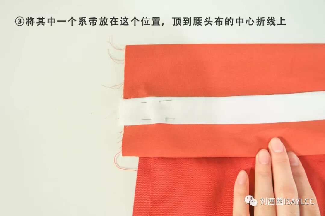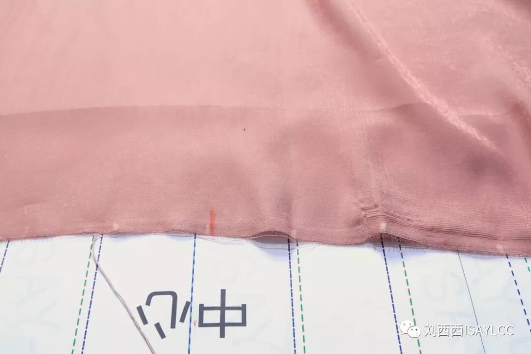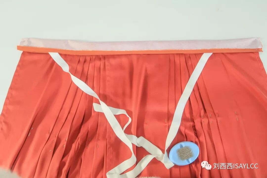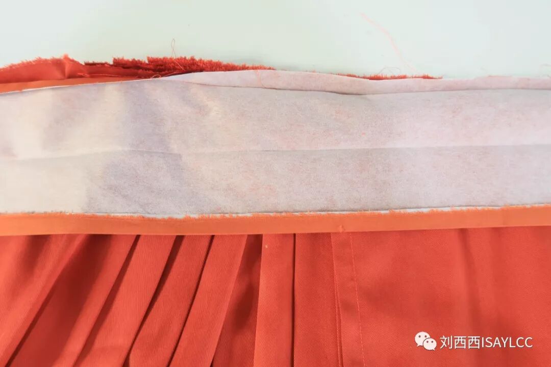 兩片裙片對齊的時候,要注意裙門不要歪,裙門的上下都要對齊,左右不要露出來。