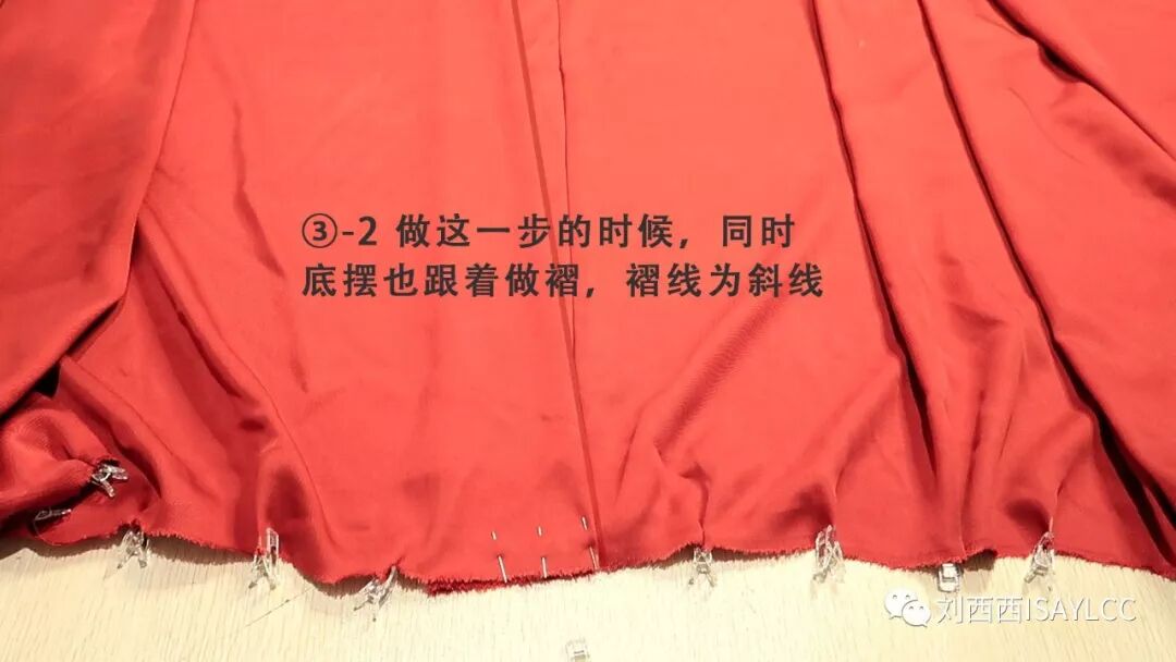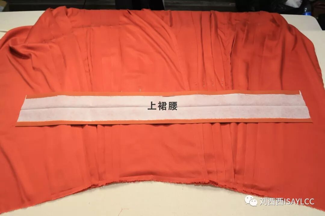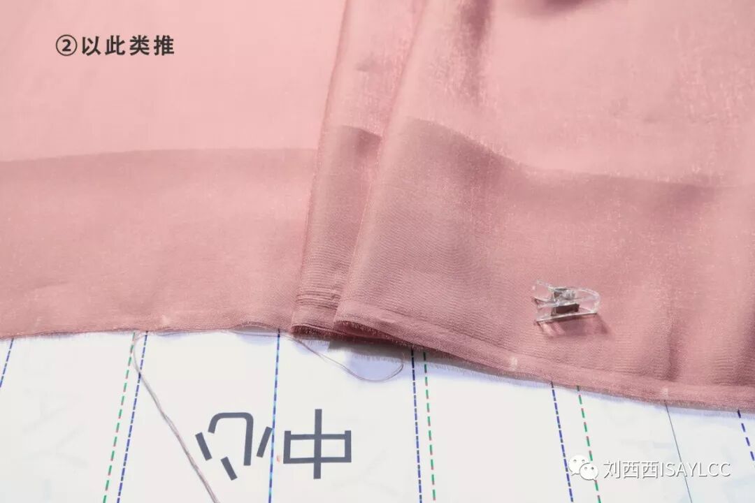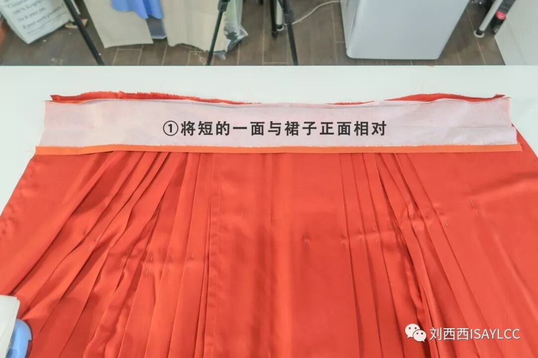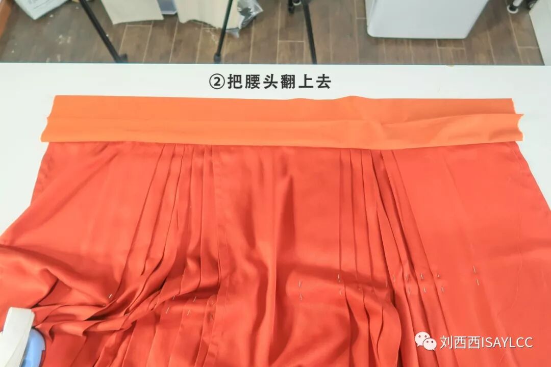 兩片裙片對齊的時候,要注意裙門不要歪,裙門的上下都要對齊,左右不要露出來。