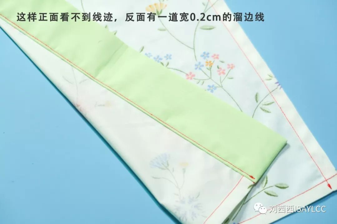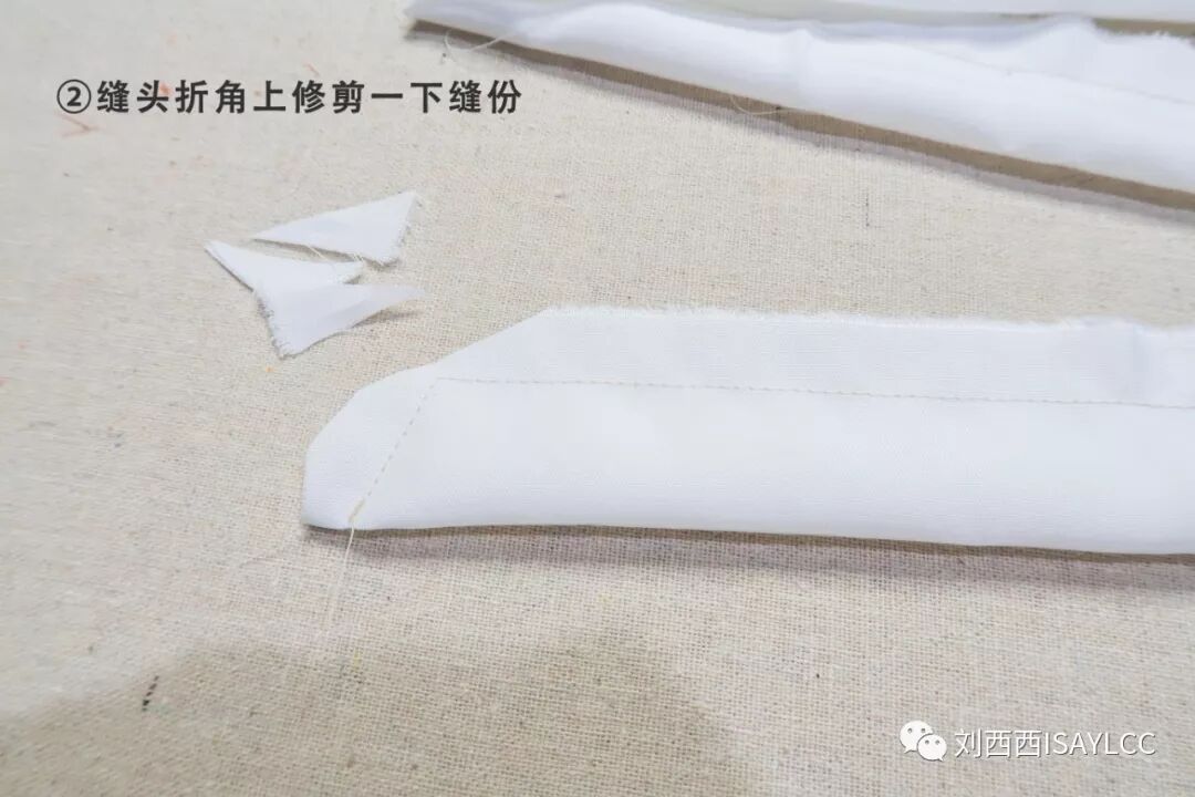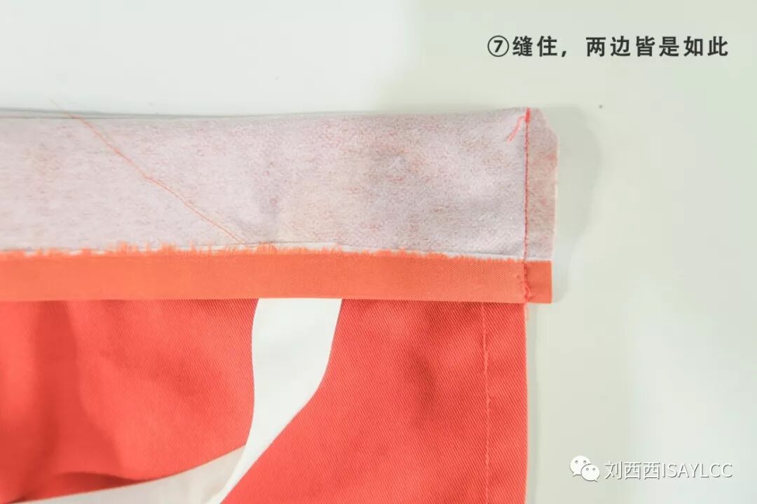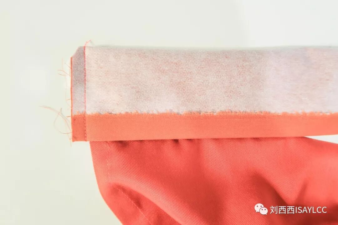 然后修剪縫份后,翻到正面,車縫漏落縫